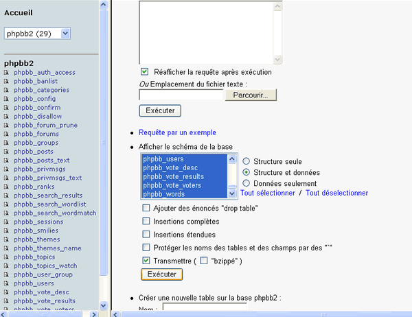 d'une table, copie d'une table ou de son contenu, etc) Sauvegarde : Sélectionner la ou les tables à sauvegarder dans la liste déroulante (ou choisir "tout sélectionner") Cocher,
