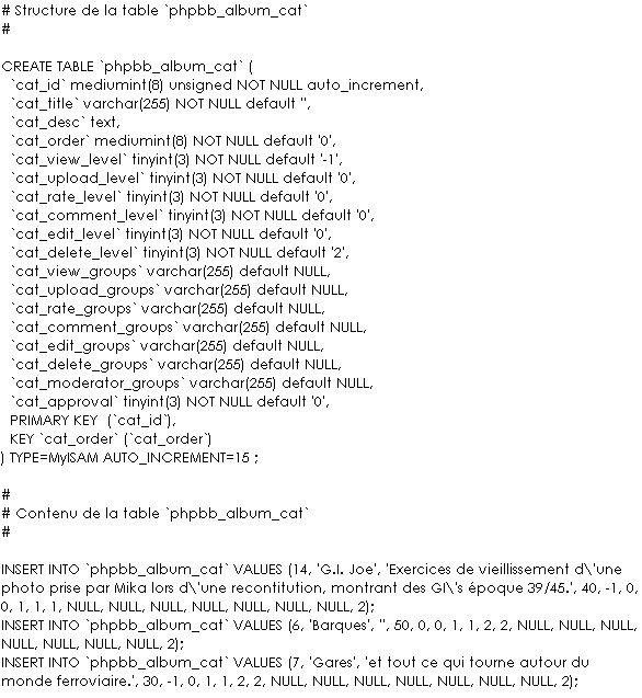Affichage Le fichier ci-joint montre la sauvegarde de la structure d'une table et de son contenu.