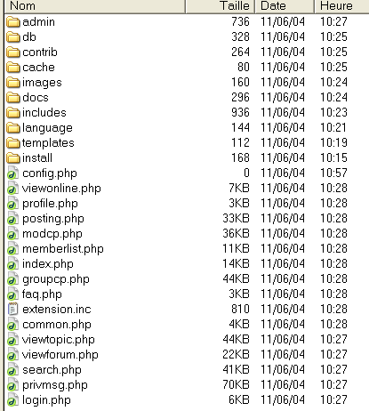 ci-contre l'arborescence totale d'un dossier phpBB.