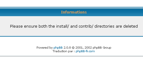 complétant l'installation, vous devez arriver sur la page ci-jointe. Par votre FTP, supprimez ces deux dossiers. |