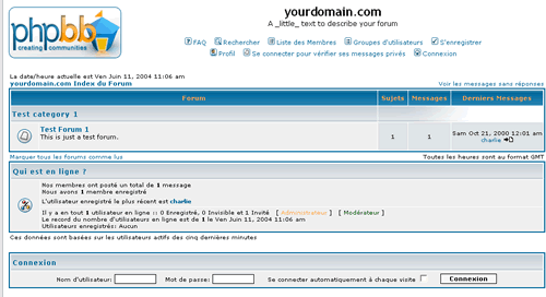 Cliquez sur l'index ou le logo et voila votre forum phpBB prêt à être utilisé !!