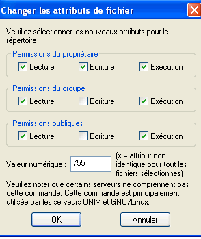 Permissions du groupe Lecture, Ecriture, Exécution valeurs respectives : 40 , 20 , 10