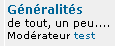 pour supprimer la mention "Modérateur : xxxx " supprimer cette partie de code: <span class="gensmall">{catrow.forumrow.L_MODERATOR} {catrow.forumrow.MODERATORS}</span> |