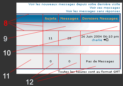 the Topics, Post & Last posts on the index.php page By default this is the fading out gradiated silver background. However, you could replace this with a bitmap specific for each forum*/ td.rowpic { 10 background-color: {T_TD_COLOR2}; 9 background-image: url(templates/subSilver/images/{T_TH_CLASS3}); background-repeat: repeat-y; |